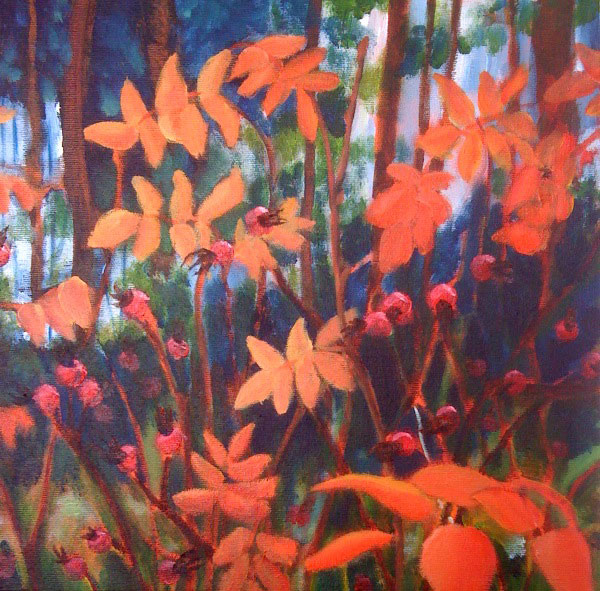 Beginning April 1st (opening night) the gallery will be exhibiting over 350 original art works priced Under Eight Hundred dollars. Kendra has a 12x12" acrylic painting in this show titled "Rosehips".